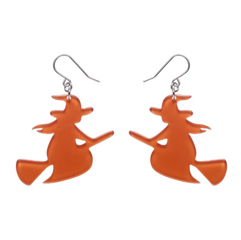 Erstwilder Megan Roy Haunted at Heart Flying Witch Drop Earrings Orange