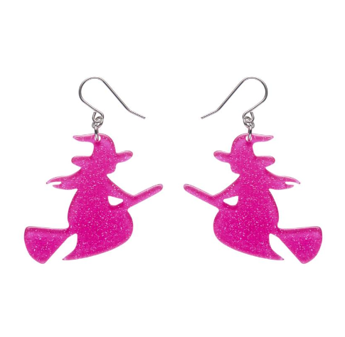 Erstwilder Megan Roy Haunted at Heart Flying Witch Drop Earrings Pink