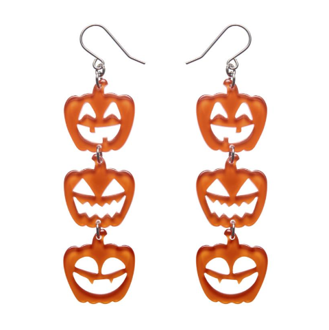 Erstwilder Megan Roy Haunted at Heart Halloween Pumpkins Drop Earrings Orange