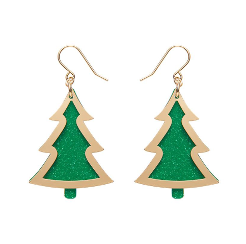 Erstwilder Merry Kitschmas Green Gold Christmas Tree Drop Earrings