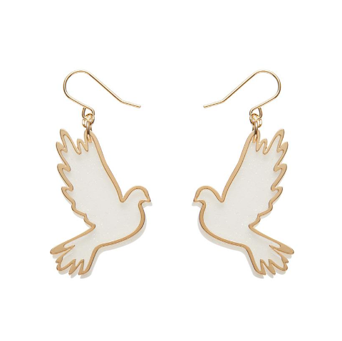 Erstwilder Merry Kitschmas White Gold Dove Drop Earrings