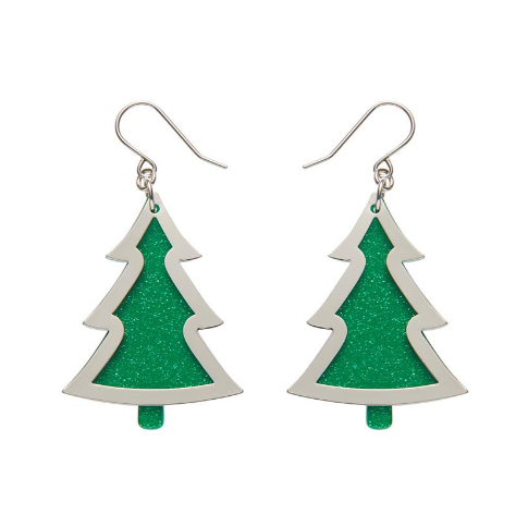 Erstwilder Merry Kitschmas Green Silver Christmas Tree Drop Earrings