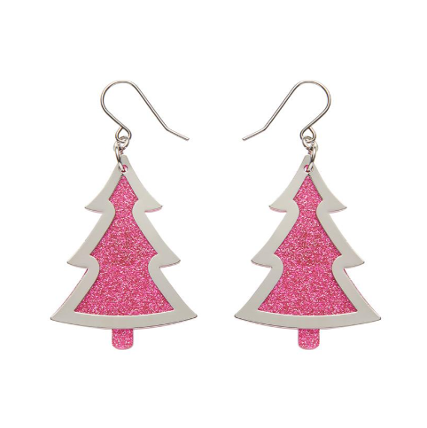 Erstwilder Merry Kitschmas Pink Silver Christmas Tree Drop Earrings