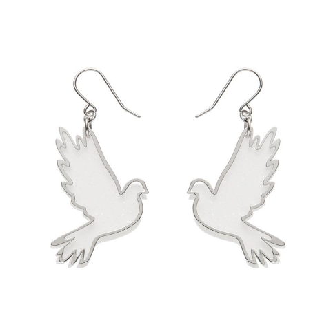 Erstwilder Merry Kitschmas White Silver Dove Drop Earrings