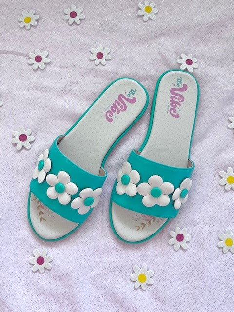 The Vibe is Flower Power In Aqua with Pearl White Flowers