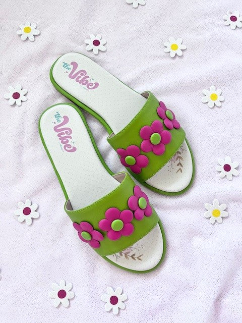 The Vibe is Flower Power In Lime Green with Hot Pink Flowers