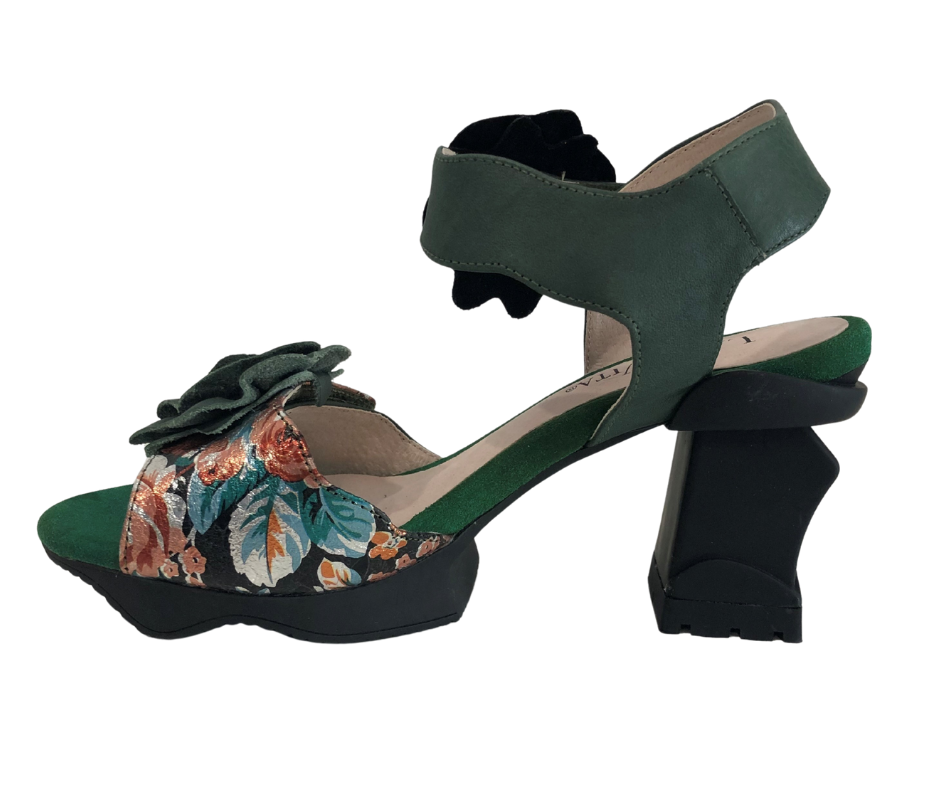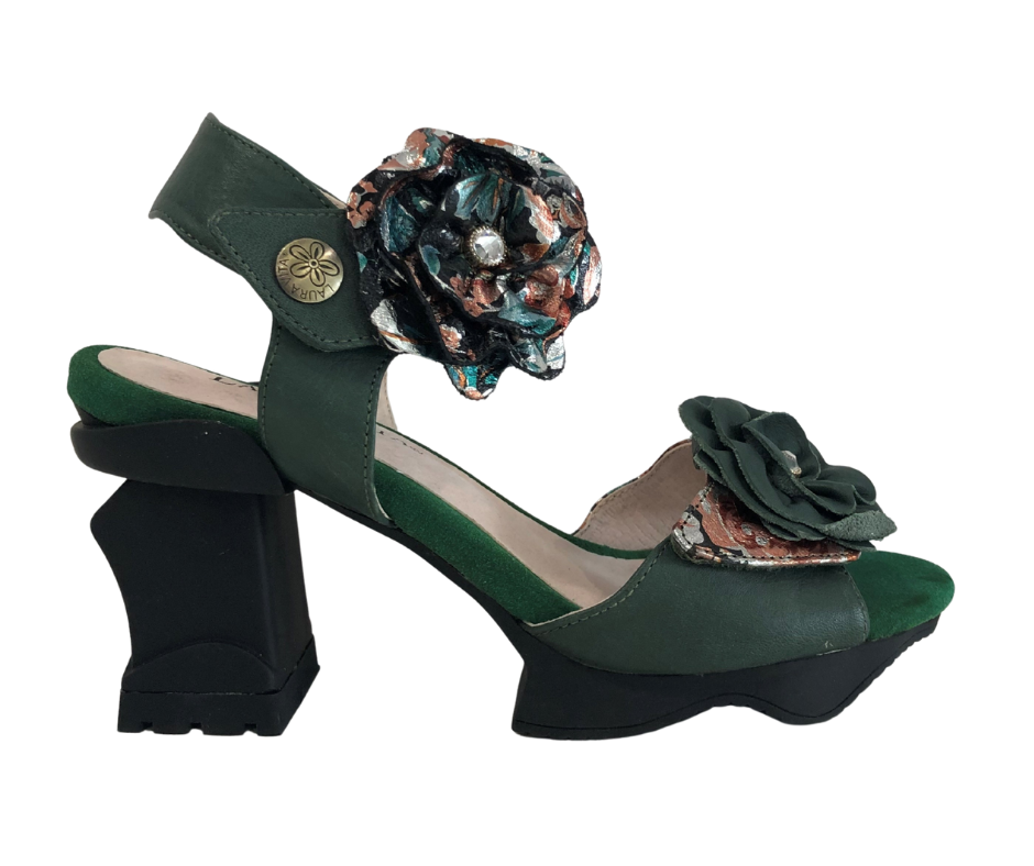 Add a dash of French flair to your wardrobe with the Laura Vita Arcmanceo Olive sandals! Featuring a stunning chunky heel in a graceful olive green, these sandals combine style and comfort effortlessly. The Velcro straps across the toe and ankle promise an easy, custom fit, while delightful flower embellishments bring a playful, blooming charm to your every step. Perfect for those who love a touch of elegance with a fun twist!
