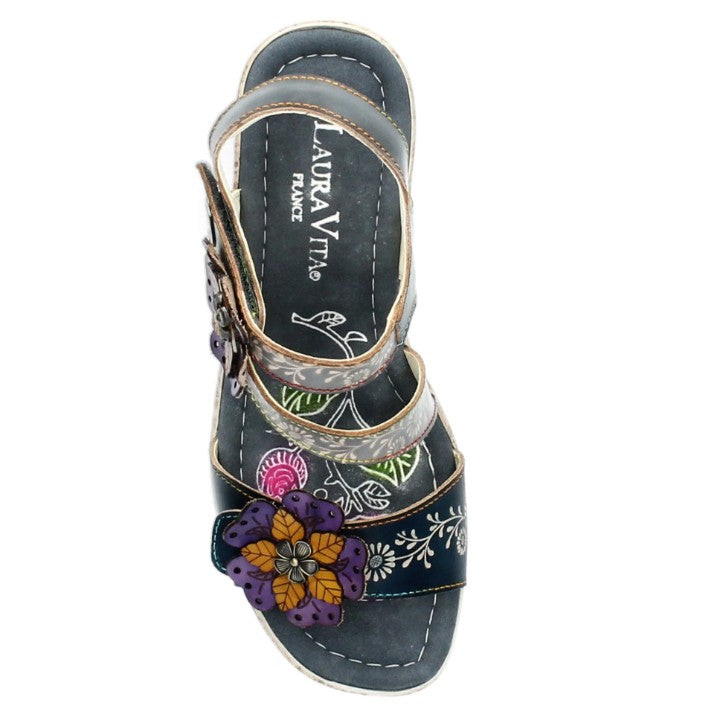 Stay stylish and comfortable with Laura Vita Beao Jeans sandals. With cute French design and delicate flower embellishments, these leather sandals will add a touch of charm to any outfit. The velcro straps make them easy to wear, so you can step out in style without any fuss.