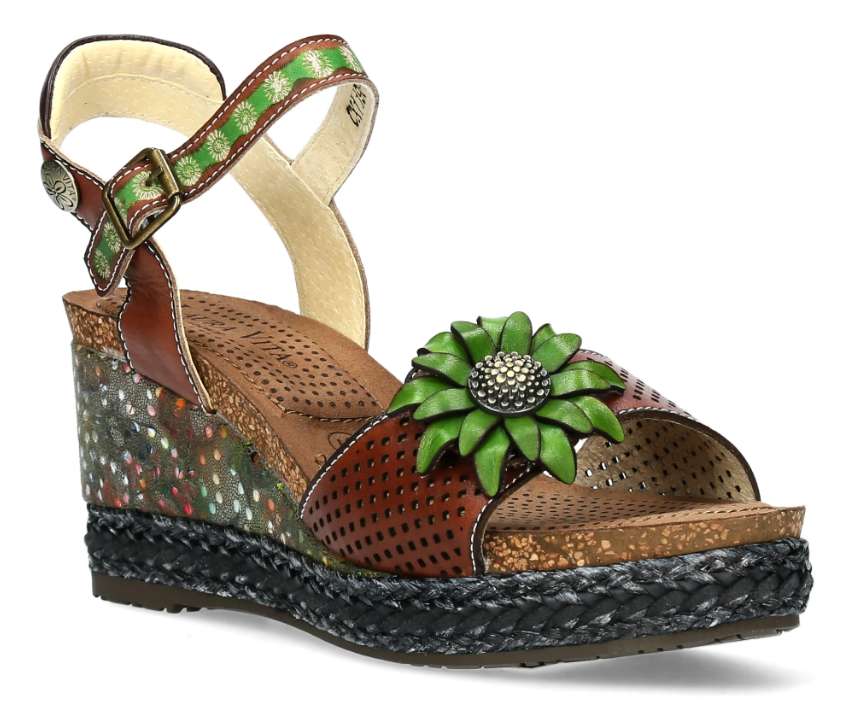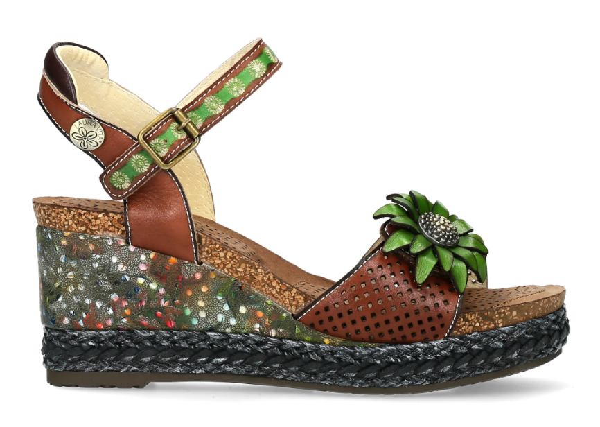 It's our favourite little wedge by Laura Vita France, back in fresh new colours for another season. These great wedges are as practical as they are gorgeous, with their adjustable velcro ankle strap and placement over the top of the foot to fit any width. The platform also gives you added height without having to wear a high heel. They are adorned with a super sweet flower that adds a fun little twist! They are pure perfection for the warmer weather, and so easy to wear ... you just throw them on and go!