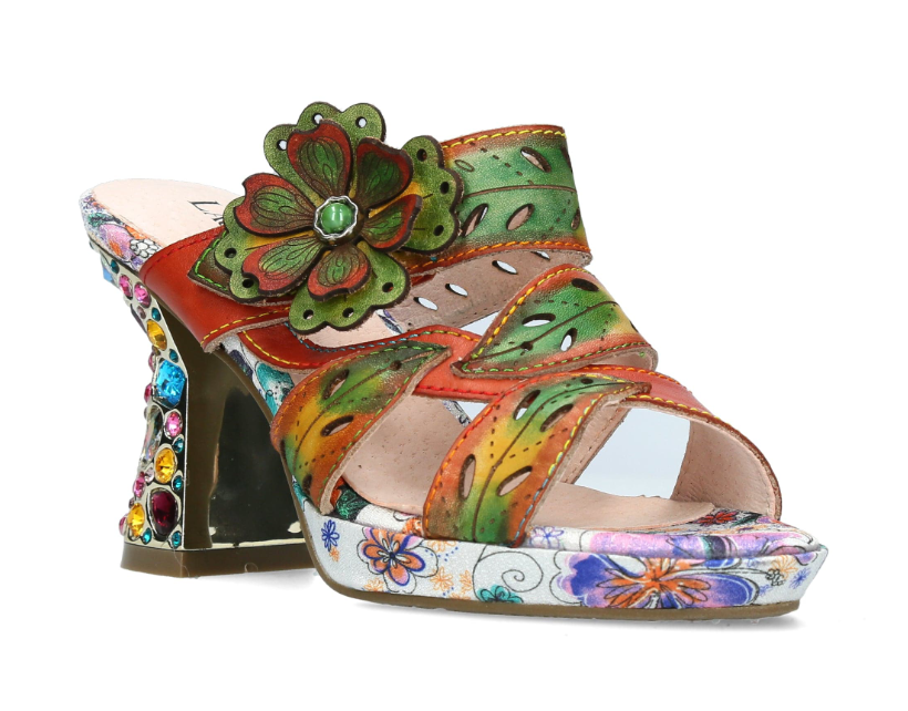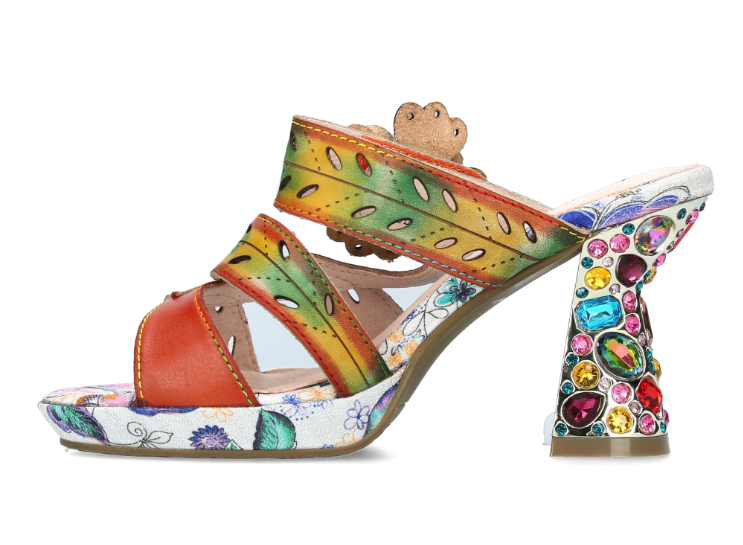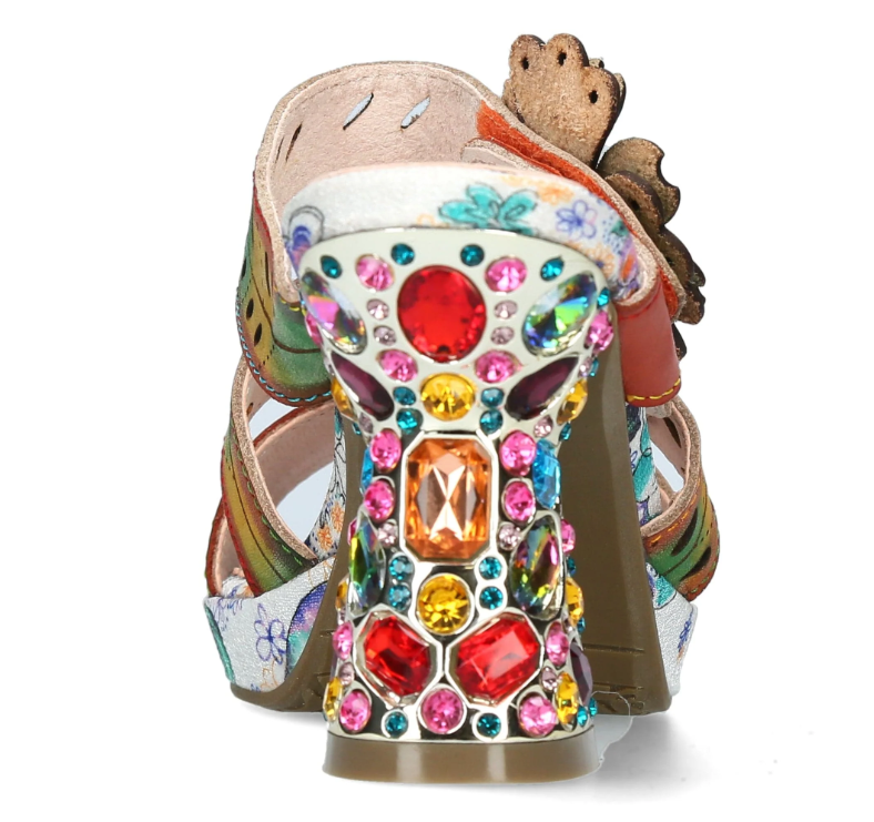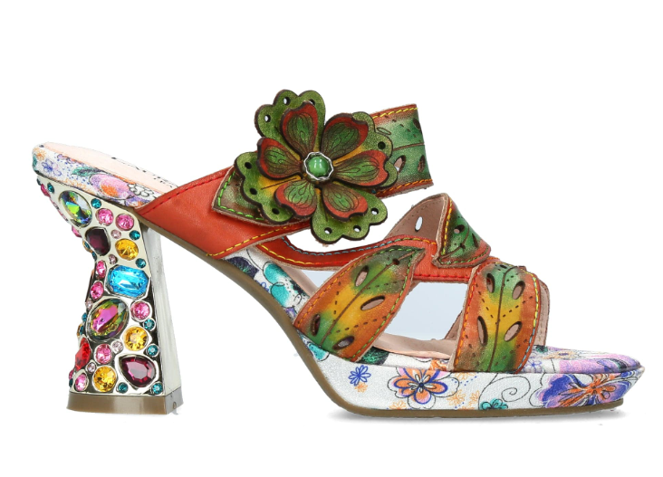 The Laura Vita Hicao Camel lets you slide into summer with playful elegance. This French-designed heel sparkles with jewel details and features an adjustable Velcro strap at the ankle for a snug, comfy fit. Finished with a sweet flower embellishment, it’s a fun statement piece that adds charm to every step.