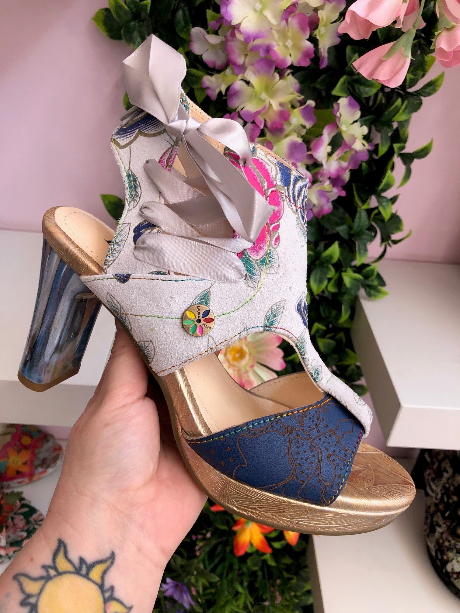 Please note the ribbon on our Hicao is a lovely soft grey and not blue, and our sole is gold (not silver)!