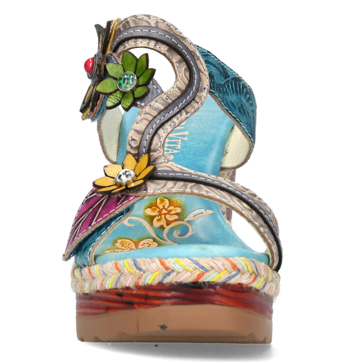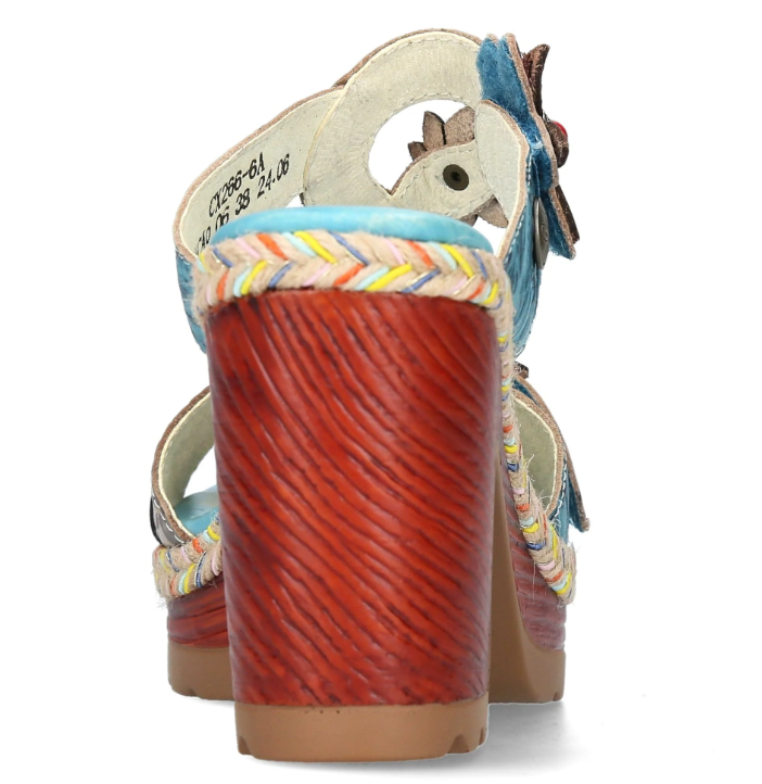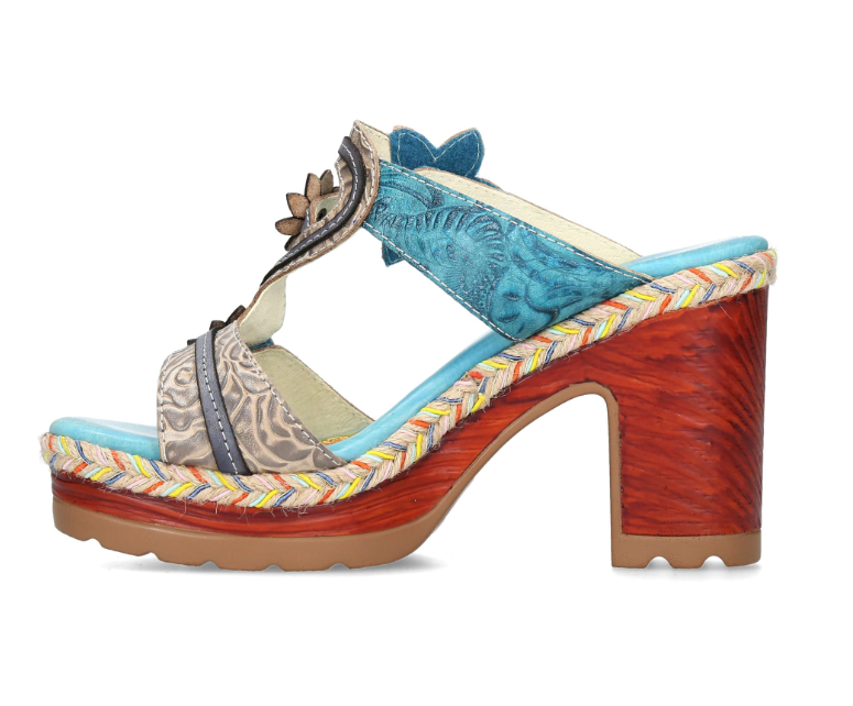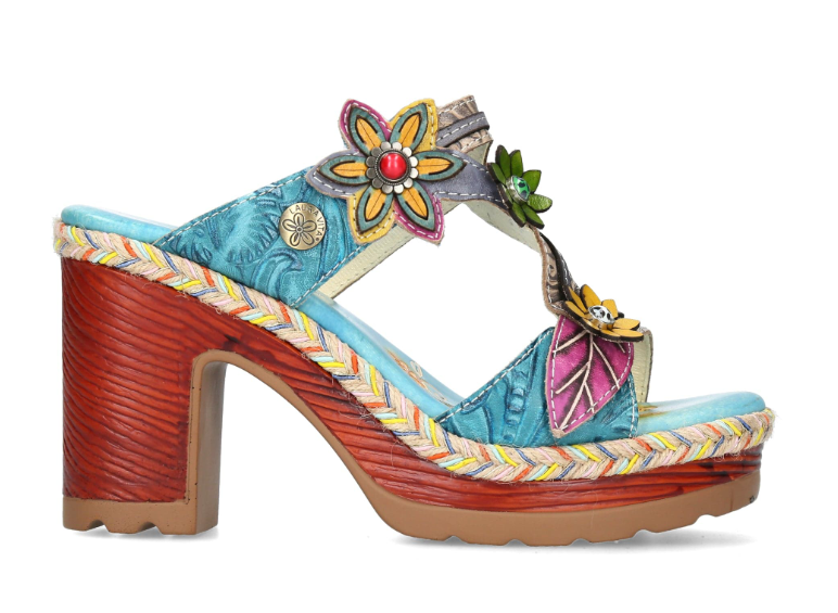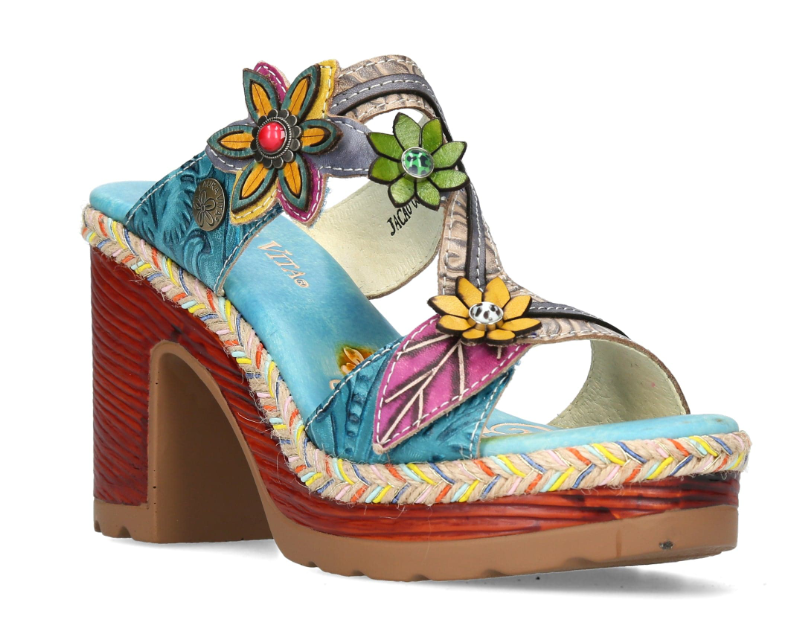 Add a pop of playful charm to your look with these French-designed Laura Vita Jacao Bleu heeled slides. Featuring gorgeous bright colors and adjustable velcro fastenings, they promise a perfect fit and stylish comfort that dances with every step.