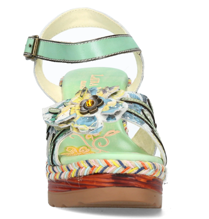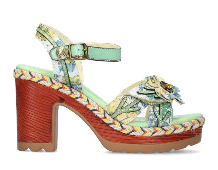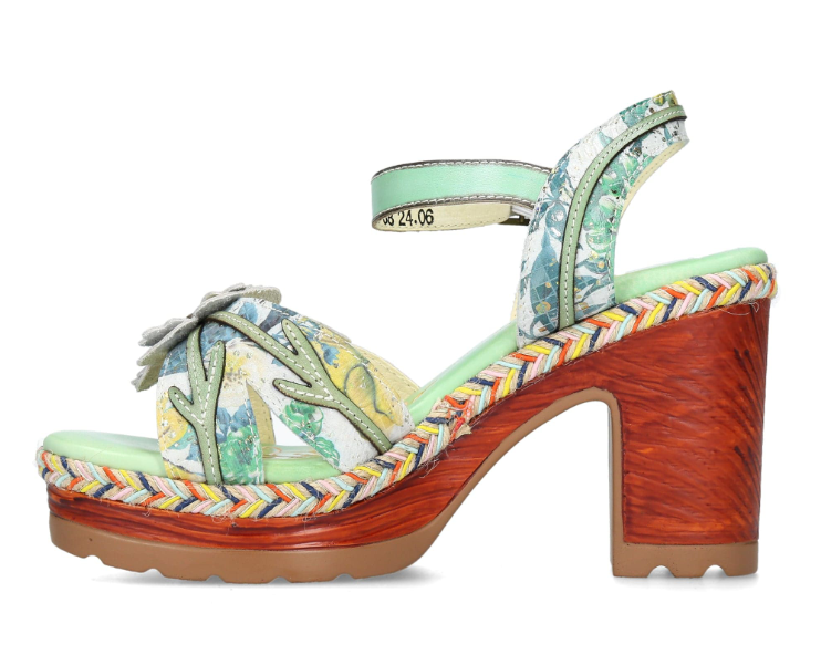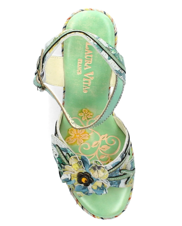 Step out in style with the Laura Vita Jacao Menthe, French-designed chunky summer heels that bring a touch of "oh la la" to your wardrobe. These playful shoes feature an adjustable Velcro fastening over the foot and ankle, ensuring a perfect, customized fit every time. Adorned with a charming flower detail at the front, they add a sweet, feminine touch to any summer outfit. Embrace comfort and fun with these must-have heels made for sunny days and stylish adventures.