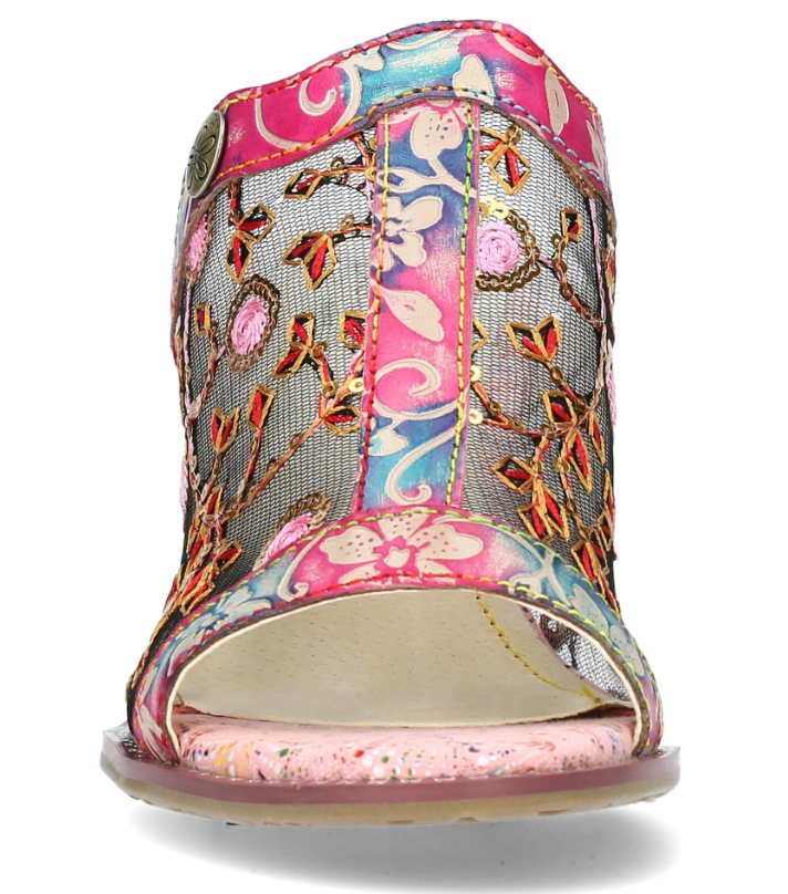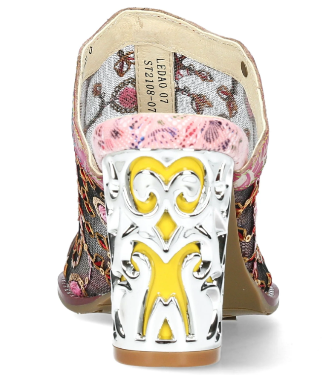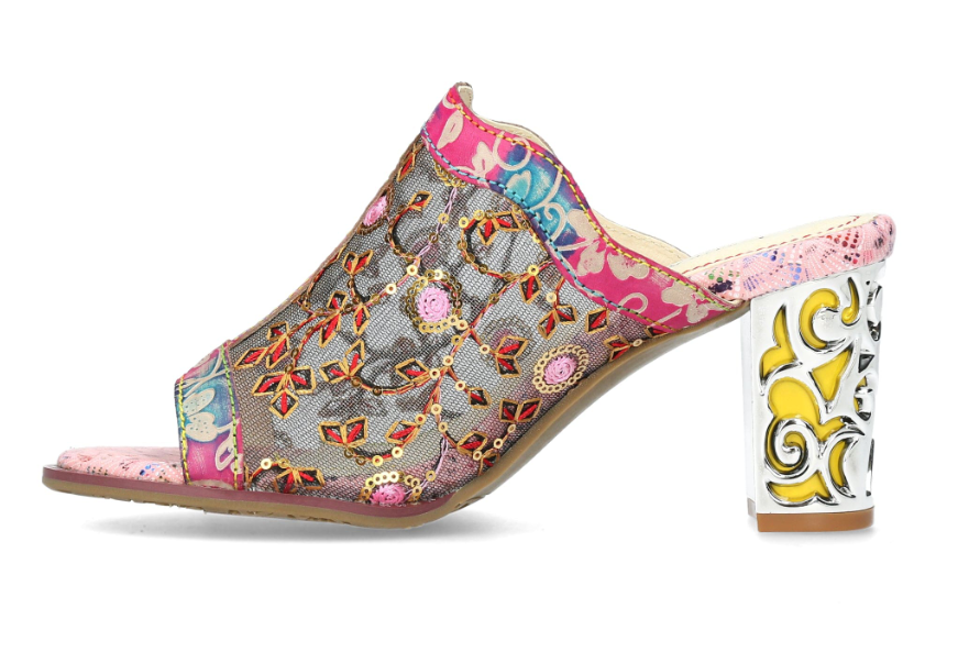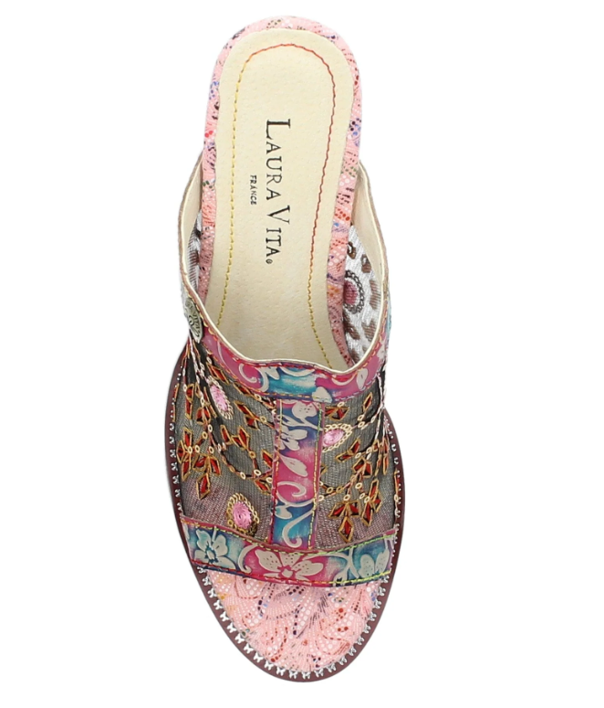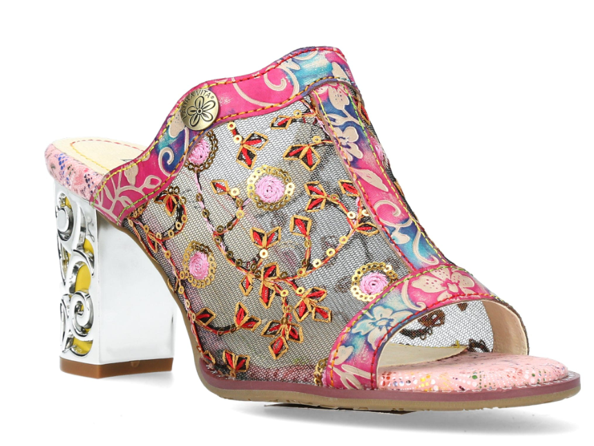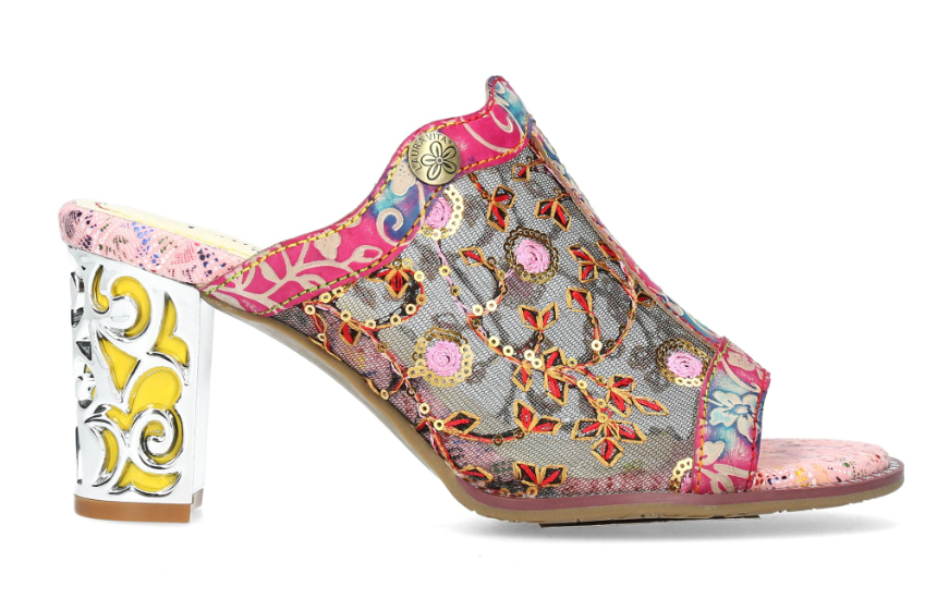 Add a touch of French flair to your outfit with the Laura Vita Ledao Rose heeled mule. The Slip on style makes for effortless wear, while the intricate filigree heel adds a unique detail. Elevate your look with this fun and stylish shoe.