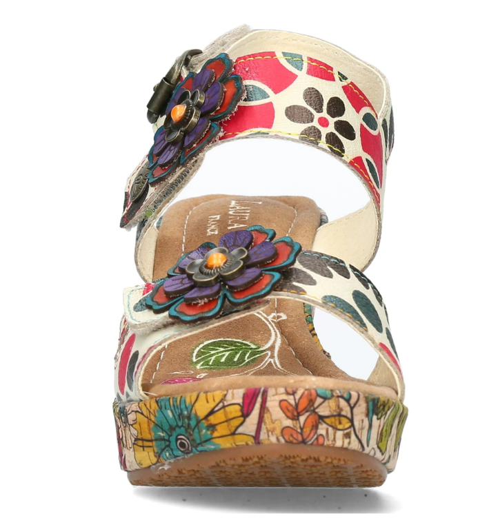 Add a splash of French flair to your summer look with these delightful Laura Vita Nellao Beige platform sandals. Featuring fun flower details over the toe, with a bright pop of color, they bring playful charm to every step. The adjustable Velcro ankle strap and strap over toe ensures a perfect fit, combining comfort with style for all your sunny adventures.