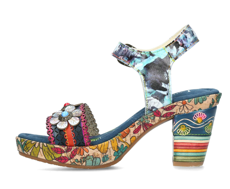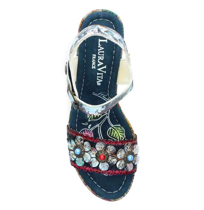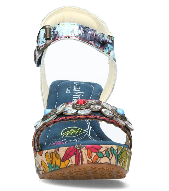 Add a splash of French flair to your summer look with these delightful Laura Vita Nellao Jeans platform sandals. Featuring fun flower details over the toe, with a bright pop of color, they bring playful charm to every step. The adjustable Velcro ankle strap ensures a perfect fit, combining comfort with style for all your sunny adventures.