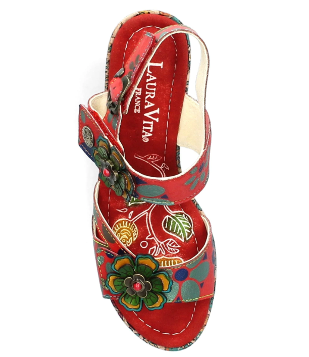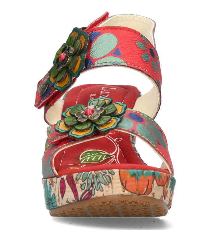 Add a splash of French flair to your summer look with these delightful Laura Vita Nellao Rouge platform sandals. Featuring fun flower details over the toe, with a bright pop of color, they bring playful charm to every step. The adjustable Velcro ankle strap and strap over toe ensures a perfect fit, combining comfort with style for all your sunny adventures.
