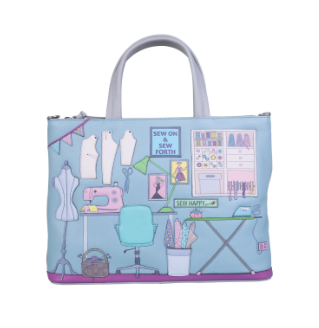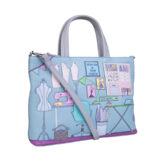 The appliqued sewing room scene adds character and will definitely attract attention. Spacious and adaptable, this soft leather bag has two internal slip pockets to organise personal items such as your phone and keys.