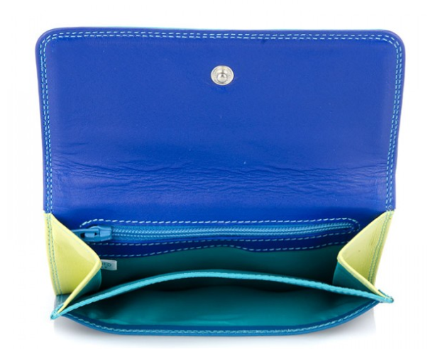Mywalit's Double Flap Purse/Wallet shows off an original double strip of mywalit colour for a unique and fun accessory! Pop open the top colour to reveal a card and note section with a transparent window for ID and a handy mini pen. The second colour strip contains a deep pocket for loose change.