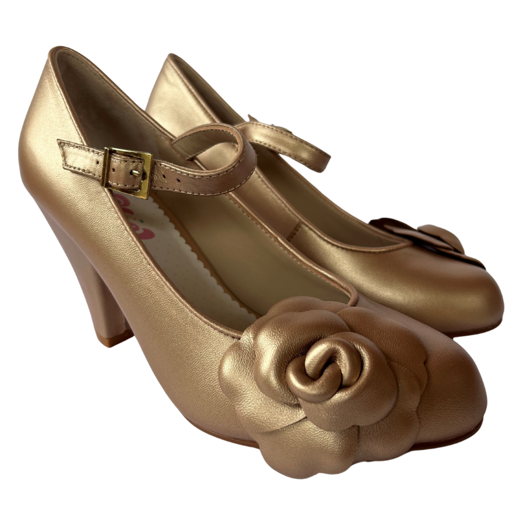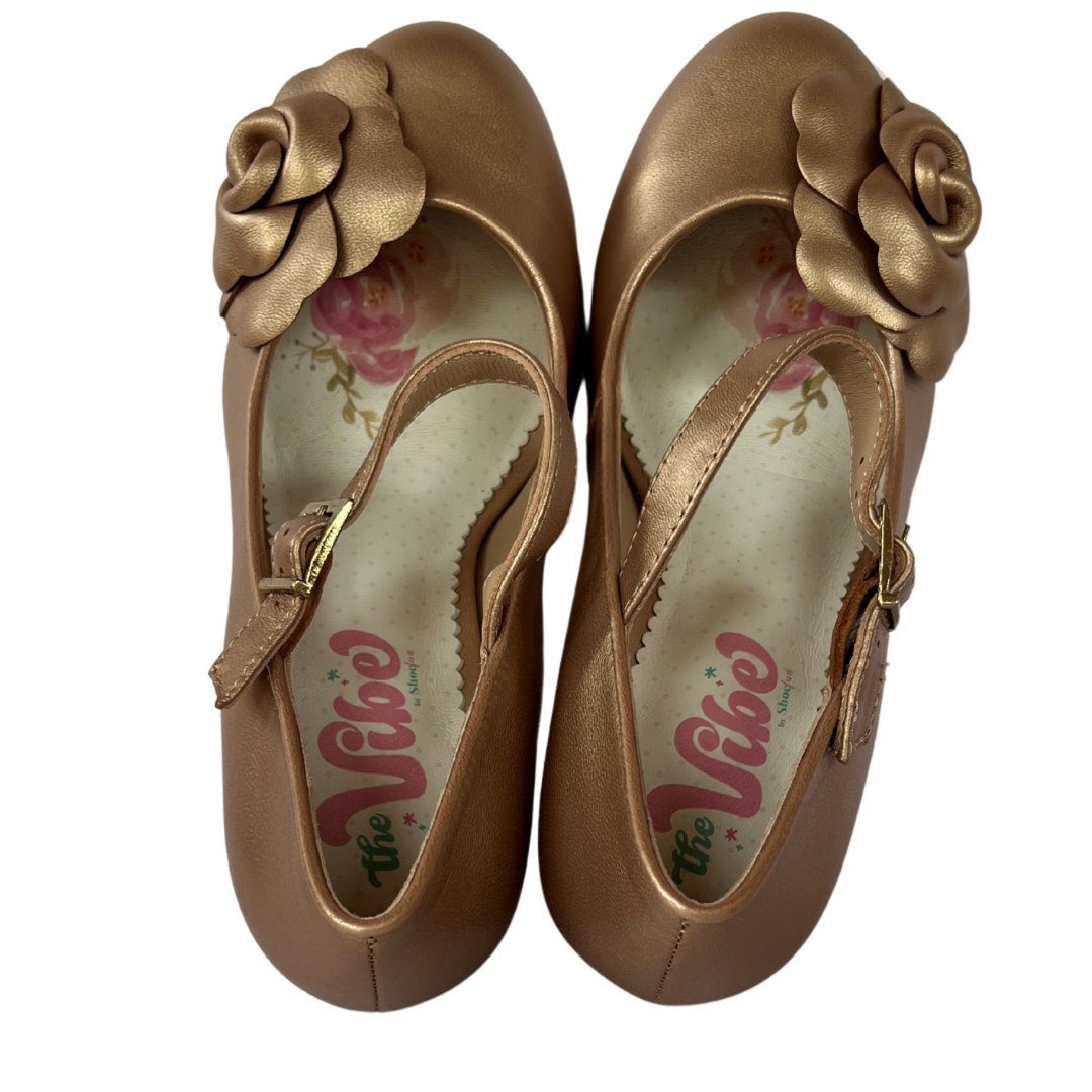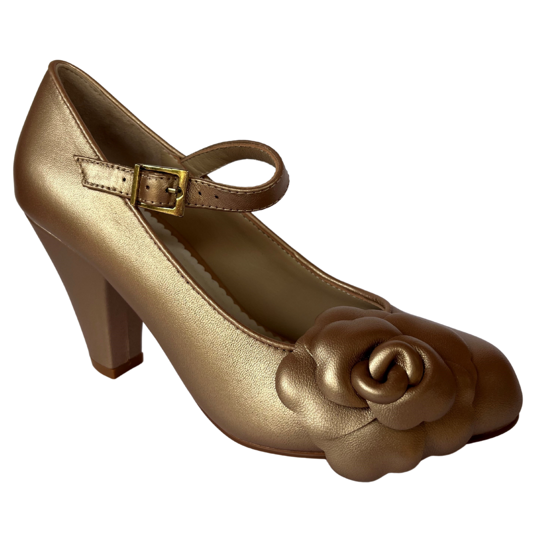 Indulge in the perfect blend of retro style and modern elegance with The Vibe is Elegance in Rose Gold. Adorned with a delicate flower detail over the toe, this dainty rose gold metallic leather heel features an adjustable ankle strap for a secure fit. Whether dressing up or down, this sophisticated shoe adds a touch of luxury to any outfit.