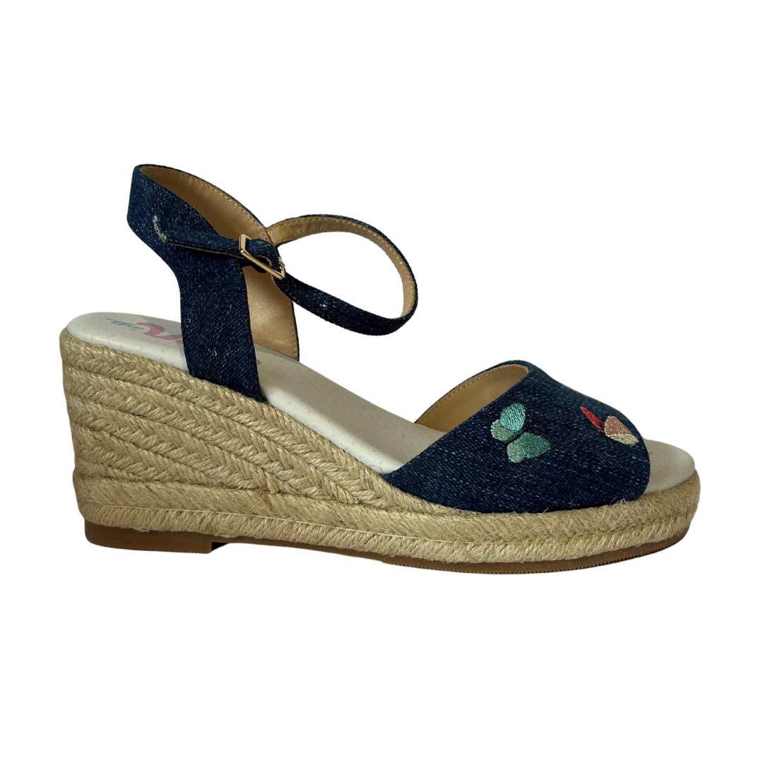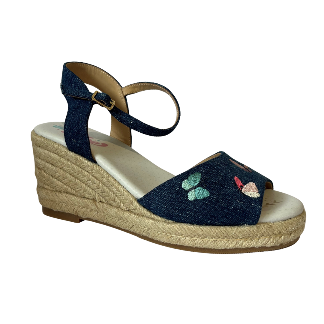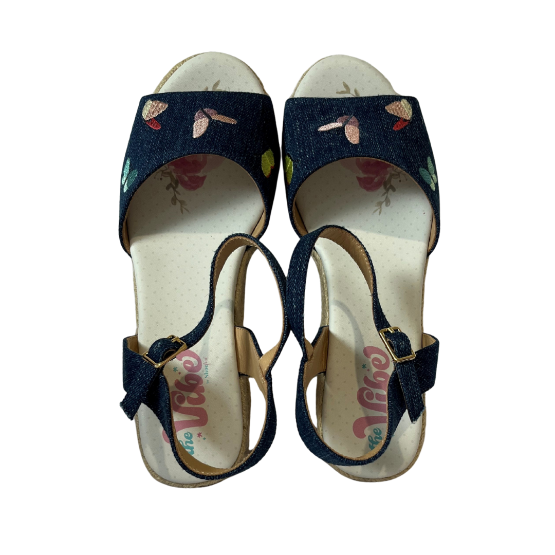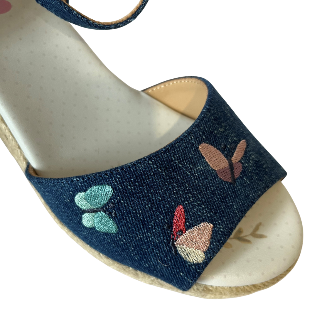 Step into sunshine with The Vibe is Flutter Denim espadrilles. Featuring charming embroidered butterflies in multi coloured hues on versatile blue denim, these shoes bring playful flair to any outfit. Adjustable straps ensure a perfect fit, making them super cute and comfy whether you’re dressing up or keeping it casual.
