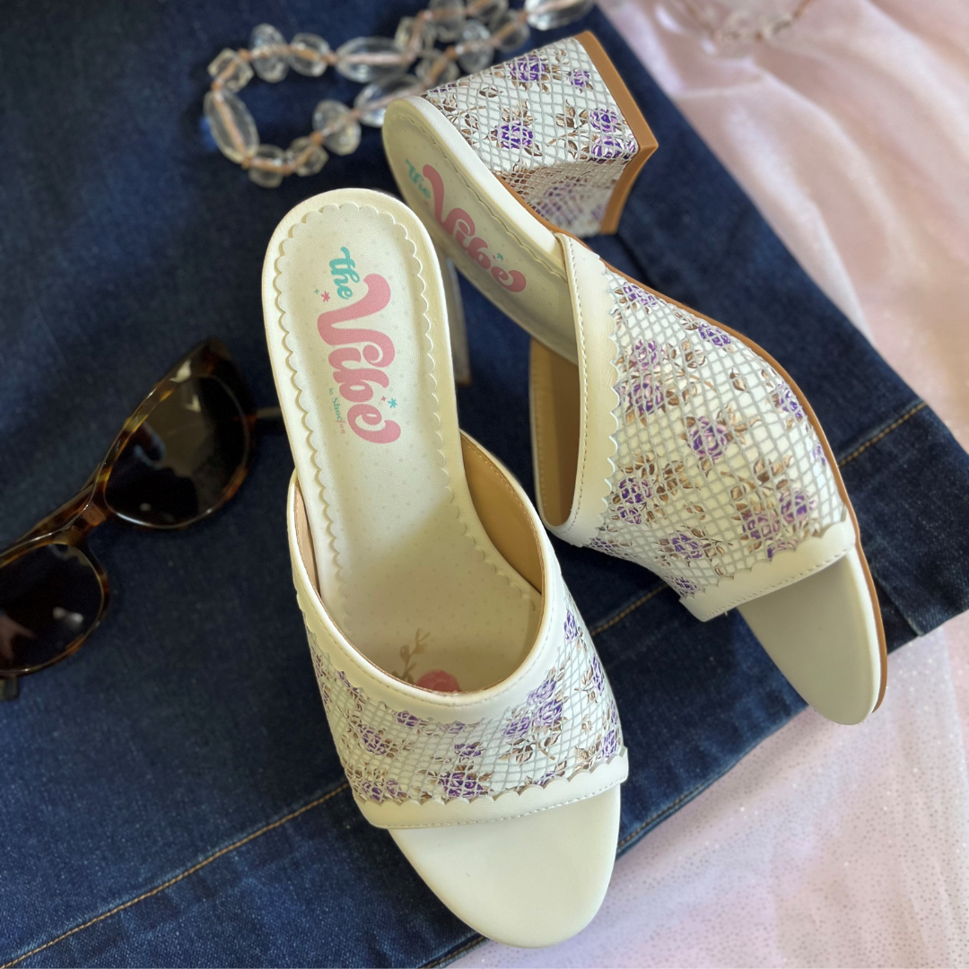 Step into summer with The Vibe is "Oh, Behave" White and Lilac Floral slides! These cute retro-style mules feature a gorgeous abstract floral printed leather upper and heel, trimmed with crisp white leather scallop edges. Designed for easy slip-on wear, they’re perfect for on-the-go days and will add an instant pop of color to brighten your look. A playful and stylish summer essential you’ll love to wear again and again.